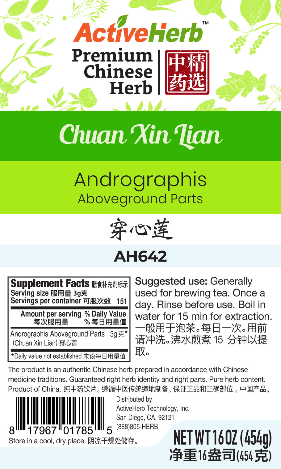 *Chuan Xin Lian bulk herb we sell is of premium quality. Our bulk Chinese herbs are mostly wild harvested but some herbs are farm grown to protect their natural habitats and meet increasing market demands. The harvests of right species at proper maturity are identified by experienced professionals, cleaned, cut or sliced, and dried. In many cases, special processing methods such as soaking with rice wine, steaming, roasting are applied as mandated by traditional Chinese medicine traditions to prepare the Chinese herbs to achieve desired properties, enhance efficacy, and reduce toxicity.