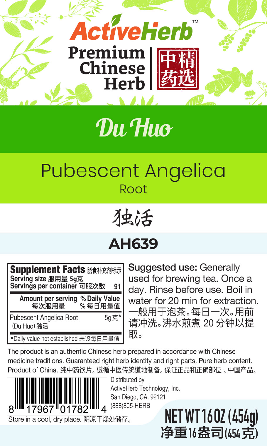 *Du Huo bulk herb we sell is of premium quality. Our bulk Chinese herbs are mostly wild harvested but some herbs are farm grown to protect their natural habitats and meet increasing market demands. The harvests of right species at proper maturity are identified by experienced professionals, cleaned, cut or sliced, and dried. In many cases, special processing methods such as soaking with rice wine, steaming, roasting are applied as mandated by traditional Chinese medicine traditions to prepare the Chinese herbs to achieve desired properties, enhance efficacy, and reduce toxicity.