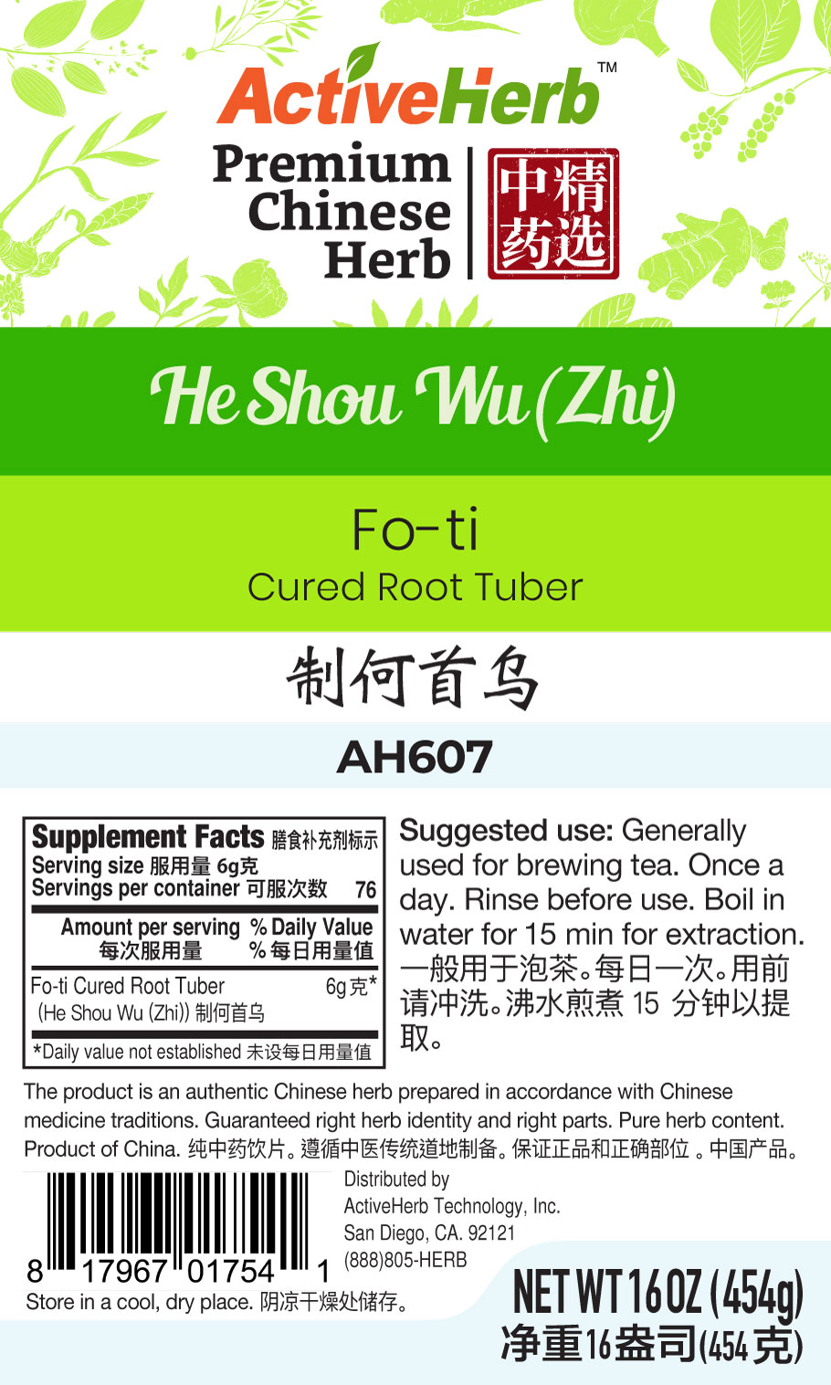 The product is an authentic, premium Chinese herb prepared according to Chinese medicine traditions. Guaranteed right herb identity, right parts, and at proper maturity. Pure herb content.
