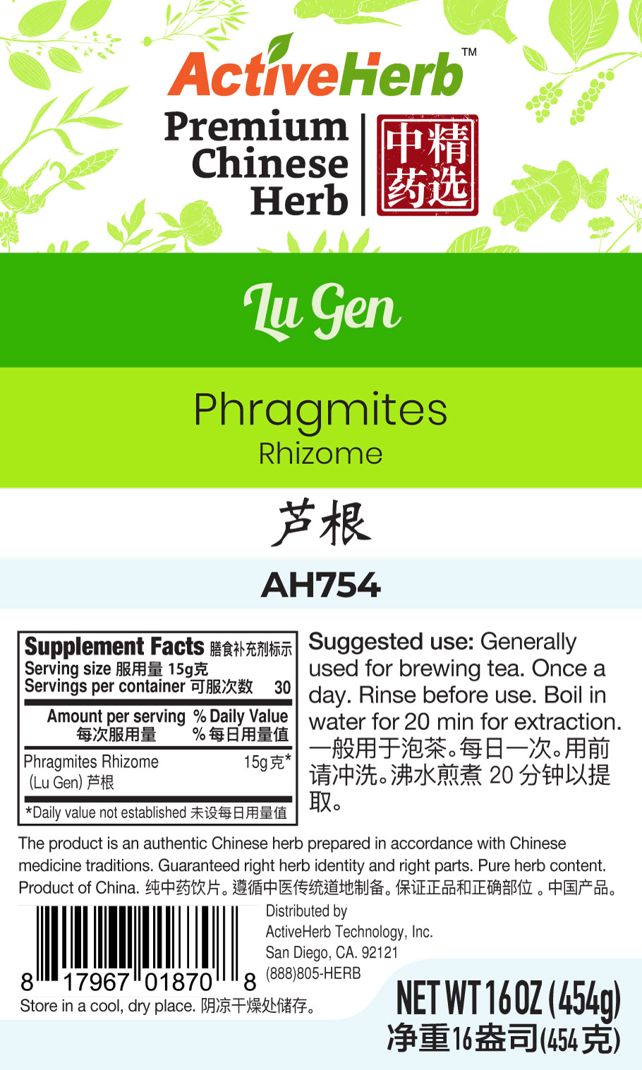 *Lu Gen bulk herb we sell is of premium quality. Our bulk Chinese herbs are mostly wild harvested but some herbs are farm grown to protect their natural habitats and meet increasing market demands. The harvests of right species at proper maturity are identified by experienced professionals, cleaned, cut or sliced, and dried. In many cases, special processing methods such as soaking with rice wine, steaming, roasting are applied as mandated by traditional Chinese medicine traditions to prepare the Chinese herbs to achieve desired properties, enhance efficacy, and reduce toxicity.